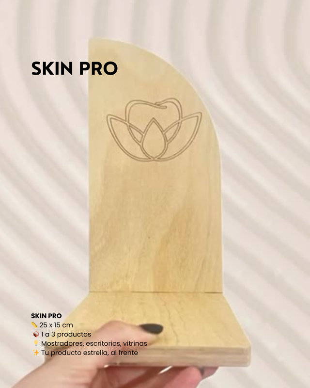 Transforma tu espacio y potencia la exhibición de tus productos de cuidado de la piel con nuestro exclusivo exhibidor de madera premium.